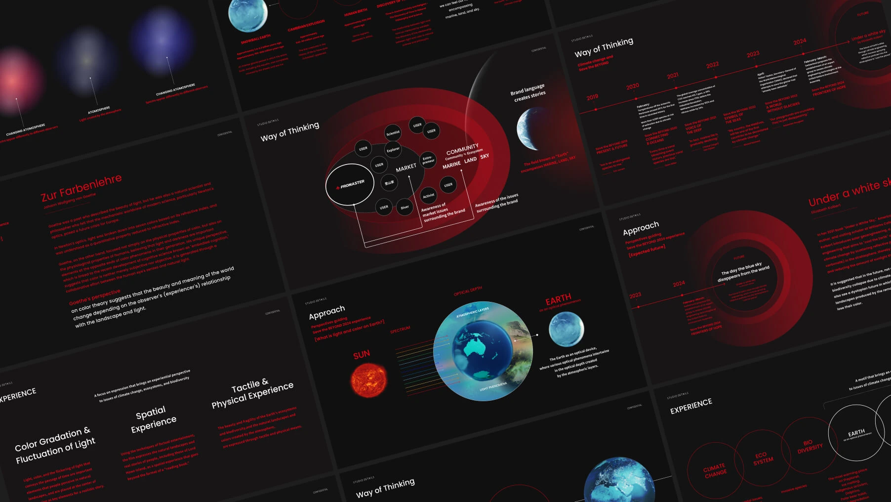 ブランドのクリエイティブパートナーとして、地球を舞台に活動するプロフェッショナルたちのリアリティとダイナミズムを感じられるブランド体験の場を創り出すことを主眼に置きました。2023年の国連世界気象機関(WMO)の氷河救済の敗北宣言や、エリザベス・コルバートの著作「世界から青空がなくなる日」など、気候変動をめぐるコンテクストを紐解きながらクリエイティブの企画を立ち上げています。