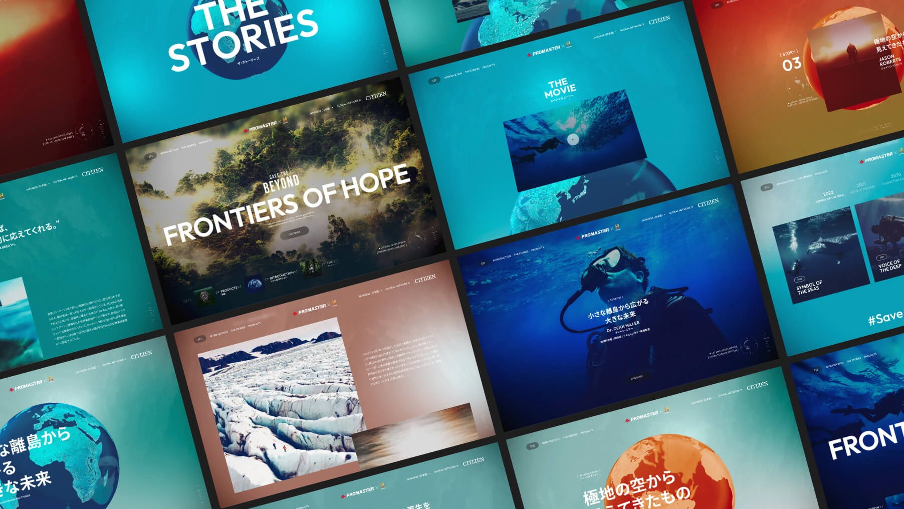 CITIZENのプロフェッショナルスポーツウオッチブランド「PROMASTER(プロマスター)」のグローバルキャンペーンにおいて、体験設計、ビジュアル、国内・グローバル8言語の情報設計からフロントエンド実装までのクリエイティブ支援を行いました。