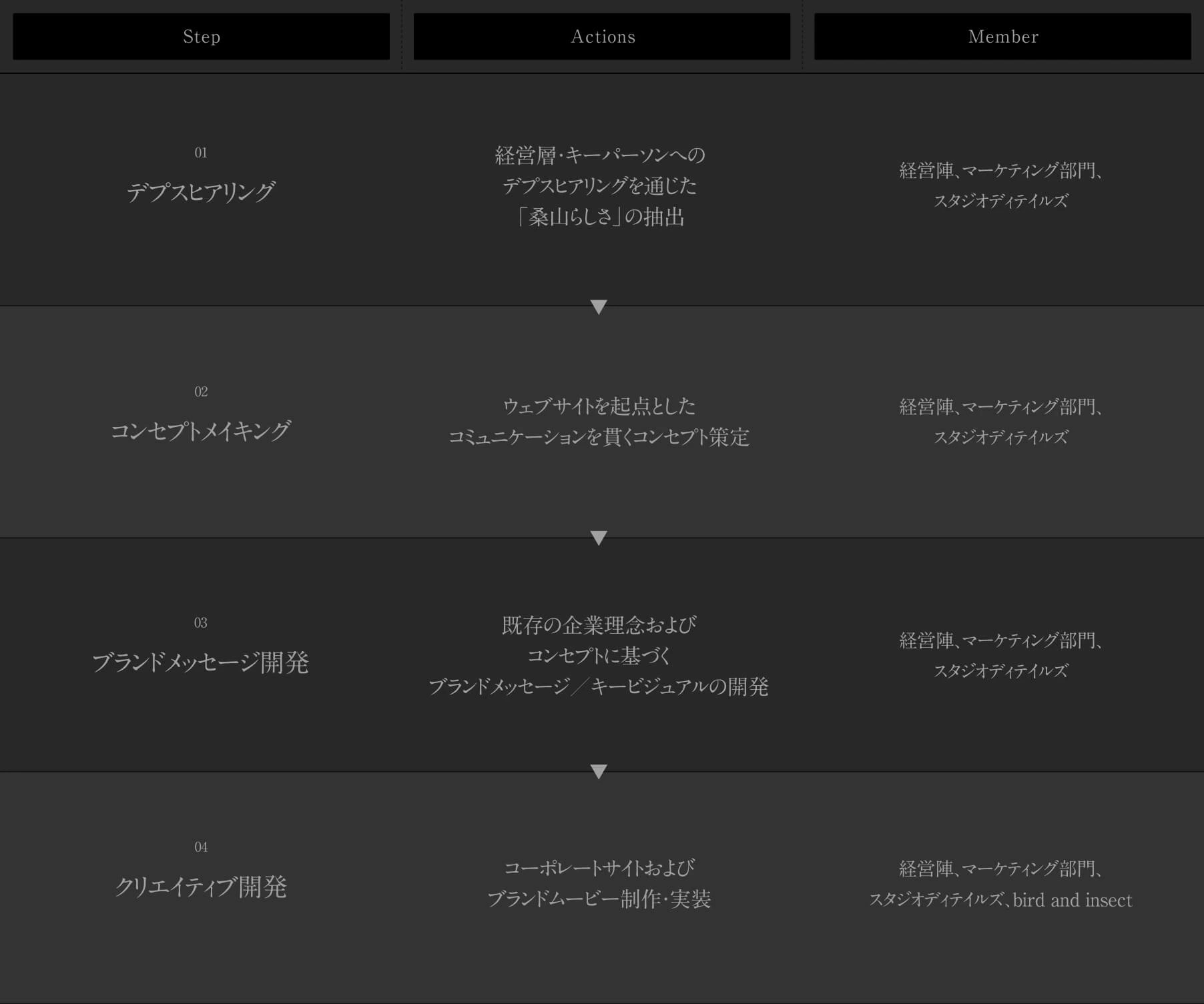 本プロジェクトで目指したのは、桑山が積み重ねてきた信頼と技術を、グローバルにも通用するブランド価値として成立させることです。派手さや分かりやすさで語るのではなく、目には見えない工程や判断、時間の積み重ねこそが桑山の強みである。その前提に立ち、BtoBの文脈で信頼を獲得するための佇まいを、言語と体験の両軸で整えることをゴールに設定しました。