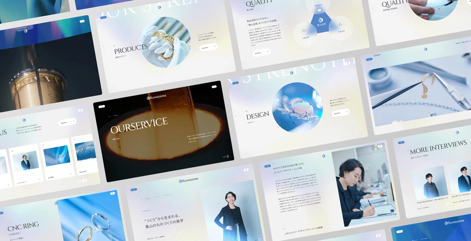 株式会社桑山は、1970年創業の総合ジュエリーメーカーです。長年にわたり、国内外のブランドや企業に向けて、高度な技術力と安定した品質を提供してきました。本プロジェクトでは、コーポレートサイトのリニューアルを起点に、桑山が創業以来大切にしてきた「誠実なものづくり」を、BtoBブランドとしてどのように伝えるべきかを再設計しました。単なる総合ジュエリーメーカーという機能的な立ち位置ではなく、業界最大手としての信頼性と、ものづくりに宿る姿勢や思想が、取引先や新規顧客に正しく伝わるブランド像を、言語と体験の両面から構築しています。