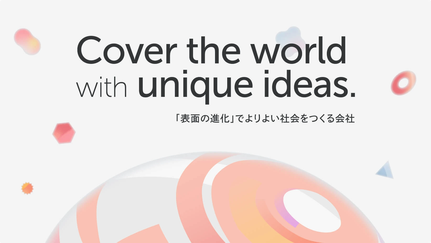 「表面の進化」をつくる会社としての再定義。研究とデザインが両輪で機能する唯一の体制であることを訴求し、クライアント課題を「共創」で解決する開発パートナーとしてのポジション確立を狙いました。