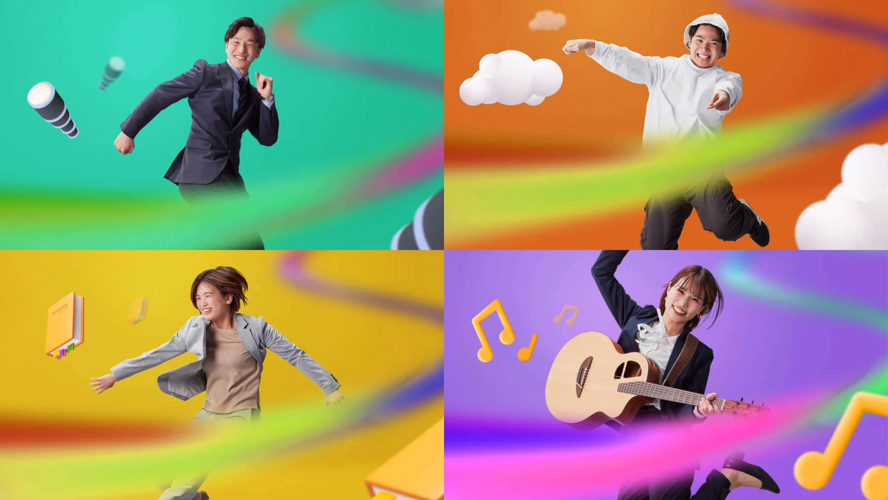 採用サイトでは、理解を促すのではなく「自己認識」を促すことを重視。心理学理論に基づく「むきだし診断」を開発し、ユーザー自身の価値観を浮き彫りにする体験を実装しました。また、新卒社員が直面する現実を葛藤も含めて描く「最初の仕事」などのコンテンツを通じ、思想を実感を伴うストーリーへと翻訳。ビジュアル面では、個人のアイデンティティ(ミクロ)が組織を通じて社会へ伝播していく様を、WebGLを用いた動的な表現で具現化し、思想と実用性が高度に融合したデジタル体験へと仕上げました。