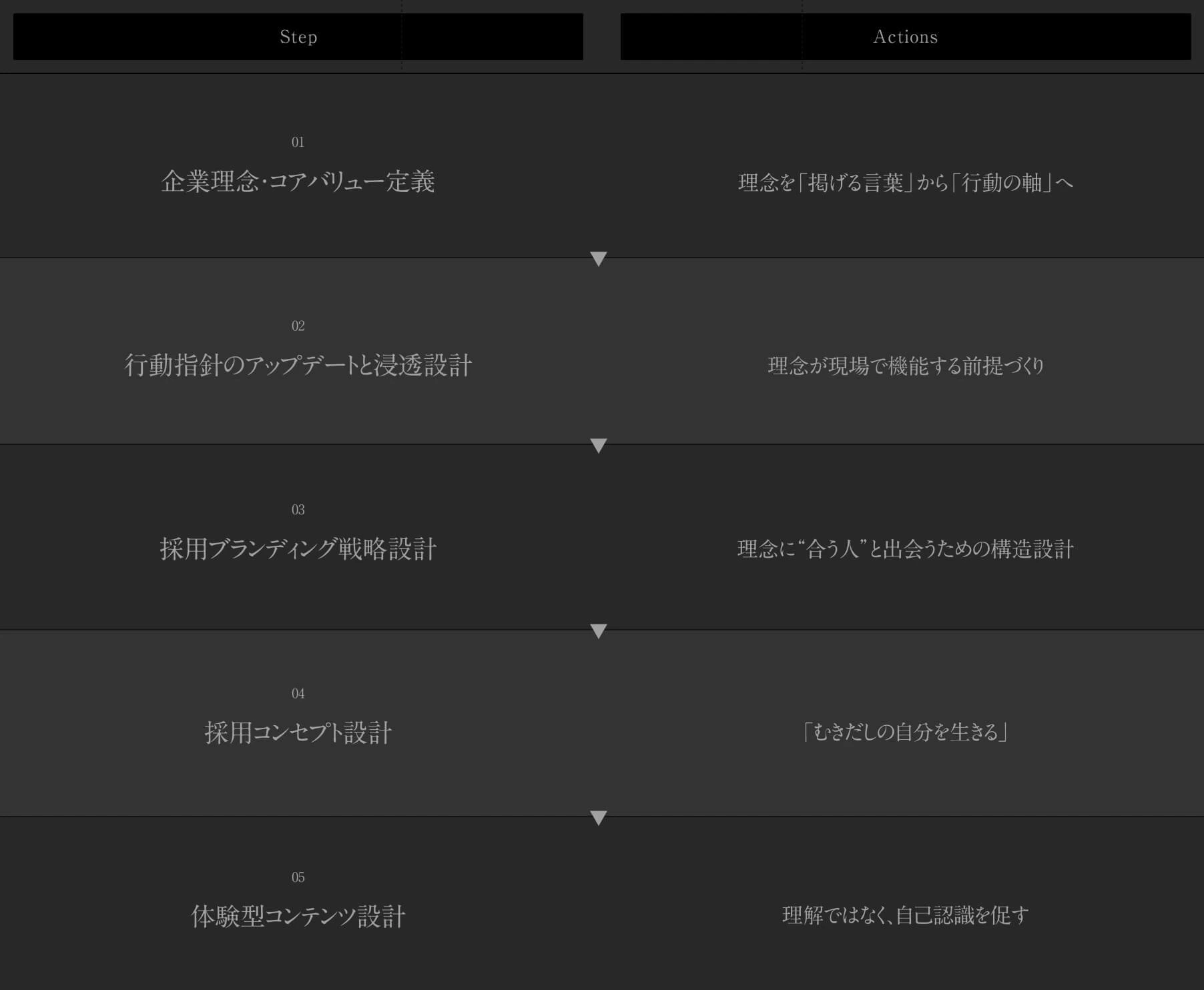 「むきだしの自分を生きる」というコンセプトには、自己の可能性を信じ、変化し続ける人生を肯定するという意志を込めています。これは入社を過度に促す言葉ではなく、候補者に入社前に一度立ち止まり、自らの生き方を自問させるための「装置」です。採用メッセージの構造全体をこの軸で統合し、理念に真に共鳴する人材を惹きつける磁力を設計しました。