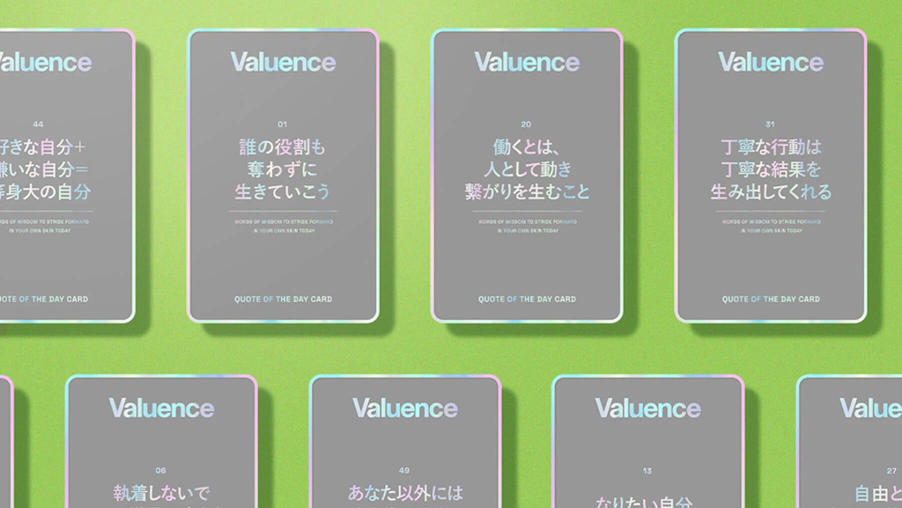 理念・行動・採用が、一本の思考線で繋がった一貫性のあるメッセージへと整理されました。「バリュエンスらしさ」の本質を、単なる情報ではなく「体験」として受け取れる採用サイトが完成し、理念への深い共感を前提とした質の高い出会いの基盤が確立されました。本プロジェクトは、バリュエンスが大切にしてきた価値観を次世代へ確実に継承し、共に未来を切り拓く仲間を募るための、揺るぎないブランドアセットとなりました。